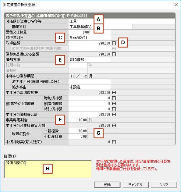 30万円未満の 少額減価償却資産 を登録する方法 個人 弥生会計 サポート情報